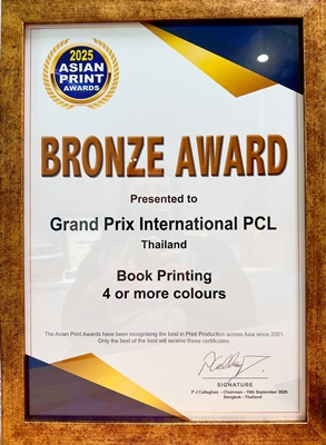 งานประกวดรางวัล Asian Print Awards 2025 ถือเป็นรางวัลอันทรงคุณค่าในวงการการพิมพ์และบรรจุภัณฑ์ระดับเอเชีย ที่มอบให้แก่ผลงานที่มีความโดดเด่นด้านคุณภาพ ความคิดสร้างสรรค์ และมาตรฐานการผลิต โดยมีคณะกรรมการผู้ทรงคุณวุฒิจากนานาประเทศร่วมตัดสินอย่างเข้มข้น จากผลงานเข้าร่วมกว่า 300 บริษัท จาก 20 ประเทศ ทั่วภูมิภาคเอเชีย การที่กรังด์ปรีซ์ฯ ได้รับรางวัลครั้งนี้ นับเป็นการสะท้อนถึง ความมุ่งมั่นพัฒนาคุณภาพงานสิ่งพิมพ์สู่มาตรฐานสากล และเป็นเครื่องพิสูจน์ว่าผลงานของคนไทยสามารถก้าวขึ้นสู่การยอมรับในเวทีระดับนานาชาติได้อย่างภาคภูมิ ไม่เพียงแต่เป็นเกียรติประวัติแก่บริษัทฯ หากยังเป็นก้าวสำคัญที่ตอกย้ำ ความเป็นผู้นำด้านนวัตกรรมสื่อสิ่งพิมพ์ ควบคู่กับความเป็นผู้นำการจัดงานกิจกรรมต่างๆในระดับสากล ของบริษัท กรังด์ปรีซ์ อินเตอร์เนชั่นแนล จำกัด (มหาชน) อีกด้วย