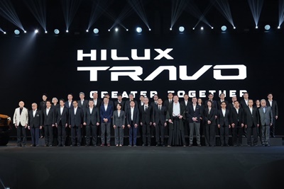 มร.ไซม่อน ฮัมฟรีส์ ประธานเจ้าหน้าที่บริหารด้านแบรนด์ บริษัท โตโยต้า มอเตอร์ คอร์ปอเรชัน ประเทศญี่ปุ่น / มร.นิค โฮจิออส ผู้จัดการอาวุโส โตโยต้าดีไซน์ ประเทศออสเตรเลีย / ดร.ธนกร วังบุญคงชนะ รัฐมนตรีว่าการกระทรวงอุตสาหกรรม / ดร.ณัฐพล รังสิตพล ปลัดกระทรวงอุตสาหกรรม / นายฐาปกรณ์ กุลเจริญ เลขานุการรัฐมนตรีว่าการกระทรวงอุตสาหกรรม / นางสาวจิรัฐิติกาล จันทราทิพย์ ประจำสำนักเลขาธิการนายกรัฐมนตรี / นายกลินท์ สารสิน ประธานคณะกรรมการ และ มร.โนริอากิ ยามาชิตะ กรรมการผู้จัดการใหญ่ พร้อมกับ นายศุภกร รัตนวราหะ รองกรรมการผู้จัดการใหญ่ บริษัท โตโยต้า มอเตอร์ ประเทศไทย จำกัด พร้อมด้วย นางสาวอัญญารัตน์ สุทธิเบญจกุล หัวหน้าวิศวกรระดับภูมิภาค บริษัท โตโยต้า มอเตอร์ เอเชีย (ประเทศไทย) จำกัด และ มร.ฮาคุโฮ โช เจ้าของแชมป์กีฬาซูโม่ระดับโยโกสุนะ (Yokozuna) ชื่อดัง ลำดับที่ 69 จากประเทศญี่ปุ่น ร่วมแถลงข่าวเปิดตัวรถกระบะมหาชนรุ่นใหม่ล่าสุด เป็นครั้งแรกของโลกที่ประเทศไทยกับ TOYOTA HILUX TRAVO และ HILUX TRAVO-e เมื่อวันที่ 10 พฤศจิกายน 2568 ณ ศูนย์นิทรรศการและ การประชุมไบเทค