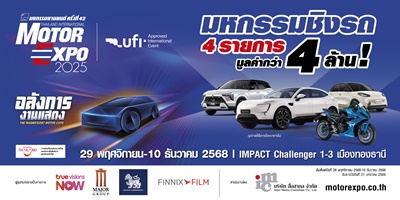 งาน “มหกรรมยานยนต์ ครั้งที่ 42” จัดขึ้น ณ อาคารชาลเลนเจอร์ IMPACT เมืองทองธานี ระหว่างวันที่ 29 พฤศจิกายน-10 ธันวาคม 2568 ติดตามข่าวสารเพิ่มเติมได้ทุกสื่อในเครือ “IMC สื่อสากล” และสามารถซื้อบัตรชมงานได้ทาง https://www.motorexpo.co.th/onlineticket/
