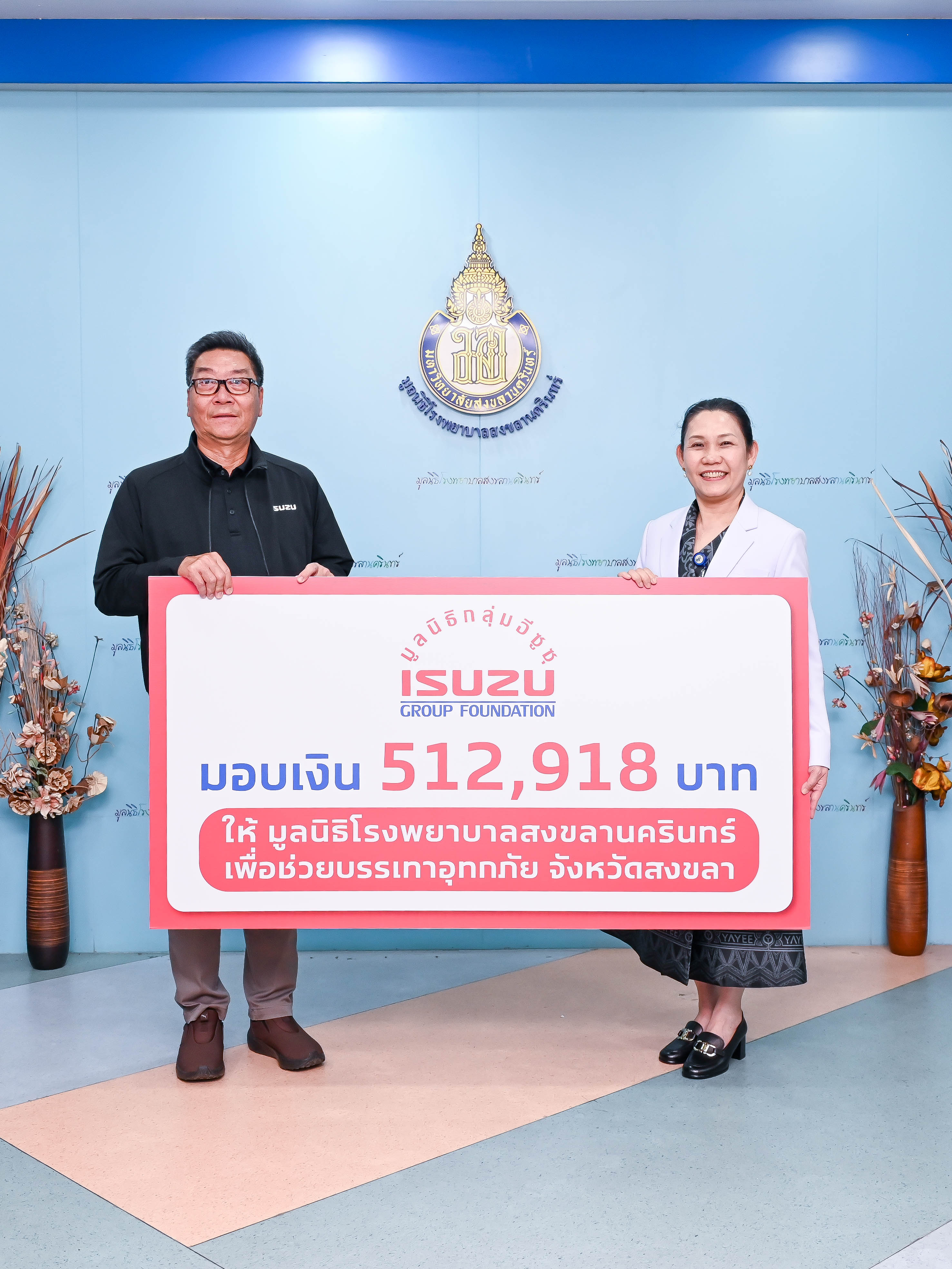 อีซูซุเดินหน้าสนับสนุนการช่วยเหลือและบรรเทาความเดือดร้อนของประชาชนที่ได้รับผลกระทบจากสถานการณ์อุทกภัยภาคใต้ในจังหวัดสงขลาอย่างต่อเนื่อง ภายใต้แนวคิด “อีซูซุเคียงข้างคุณ เคียงคู่ไทย” มอบเงินบริจาคในนามมูลนิธิกลุ่มอีซูซุ แก่มูลนิธิโรงพยาบาลสงขลานครินทร์ เพื่อร่วมเป็นส่วนหนึ่งในการบรรเทาและส่งต่อกำลังใจให้กับผู้ประสบภัยก่อนหน้านี้ในช่วงเดือนพฤศจิกายน ที่ผ่านมา